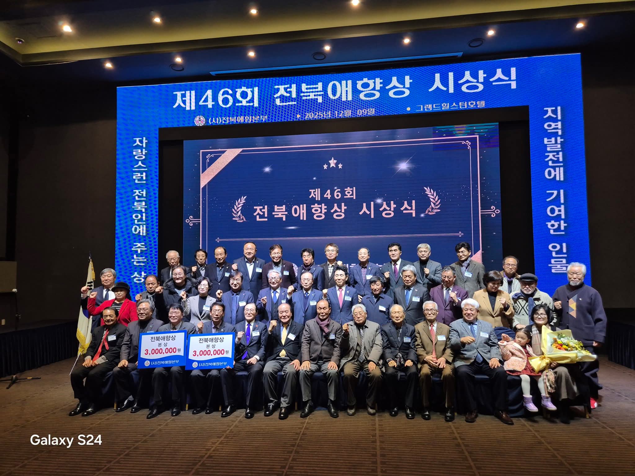 김진돈 전주문화원장님이 오늘 이른 아침, 어제 있었던 제46회 전북애향대상 관련 전북일보 보도 기사를 캡쳐해 보내왔습니다. 감사합니다. 지인들이 촬영한 사진 몇 장도 올립니다. 고맙습니다. 윤석정 총재님과 이동호 심사위원장님의 경과 설명 잘 들었습니다. 모두모두 고맙습니다. 이종근 두 손